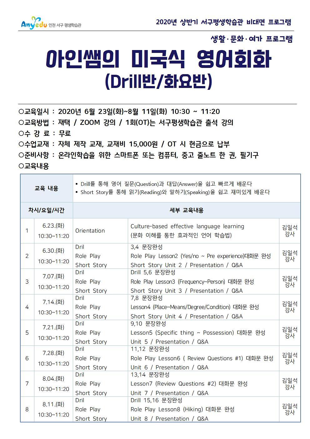 아인쌤의 미국식 영어회화(Drill반/화요반)