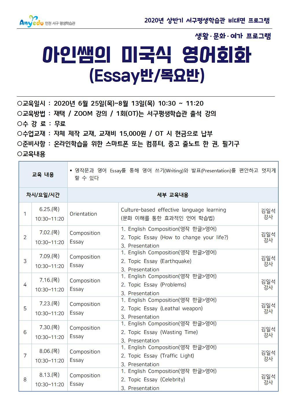 아인쌤의 미국식 영어회화(Essay반/목요반)