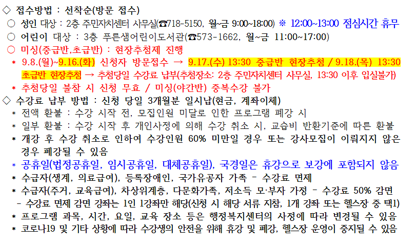 수강료 현금결제, 계좌이체만 가능/ 카드결제X