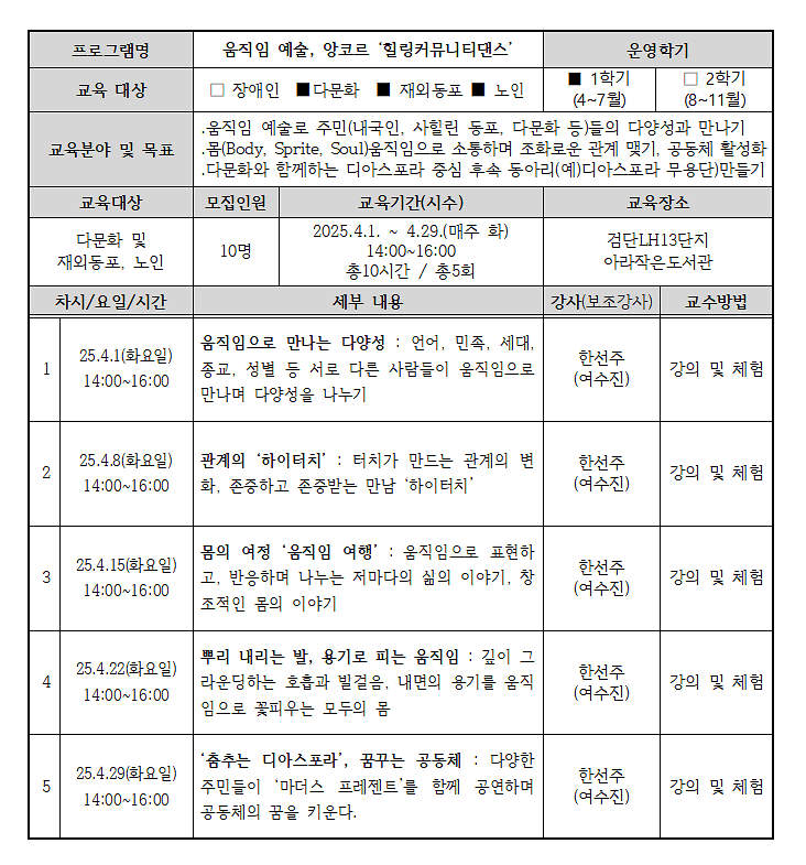 [재외동포 및 어르신 대상, 검단동] 힐링 커뮤니티 댄스